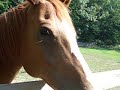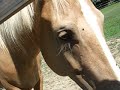 Description: Pat's horse Rocky says hi on our walk around the campground. |